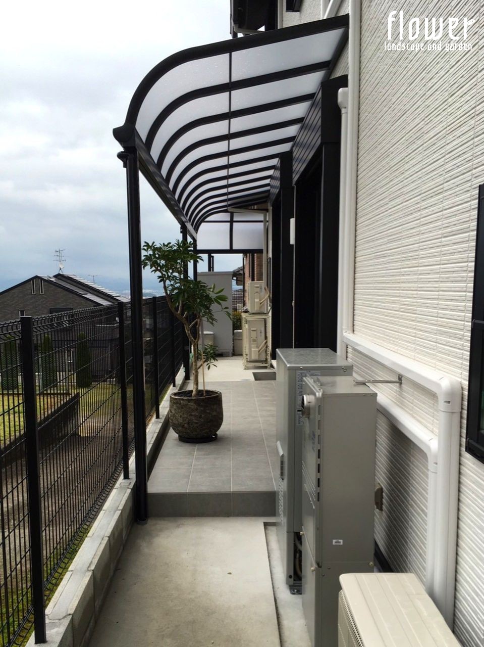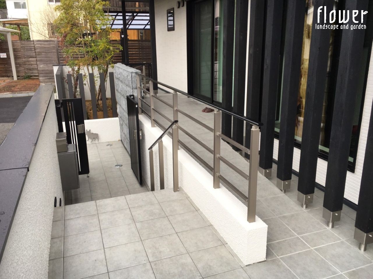 | コメント | ダークトーンで統一したエクステリアは、 用途や設置場所に応じて素材を選び フェンスや角柱などを使い分けて配置。 プライバシーの確保と風通しの良さを両立し 快適な住環境をサポートします。 アプローチ、スロープ、テラスには 自然石のような表情を持つタイルを使用。 品のある色調と質感で上質な仕上がりに。 【使用部材】 ・門扉:LIXIL ジオーナ門扉B4型 ・勝手口門扉:LIXIL プレスタ門扉1型 ・勝手口門扉:LIXIL ライシス門扉5型 ・アルミ笠木:LIXIL コーピング ・ポスト:Panasonic 口金MS型 ・宅配ボックス:Panasonic COMBO ・メッシュフェンス:LIXIL ハイグリッドフェンスN8型 ・目隠しフェンス:LIXIL プレスタフェンス6型 ・手すり:LIXIL アーキレール ・300角タイル:LIXIL ブルーノ ・アルミ角柱:タカショー スリットフェンス ・アルミ角柱:タカショー アルミ枕木風角材 ・オーバードア:LIXIL オーバードアS2型 ・カーポート:LIXIL フーゴR ・テラス屋根:LIXIL パワーアルファRA型 |
