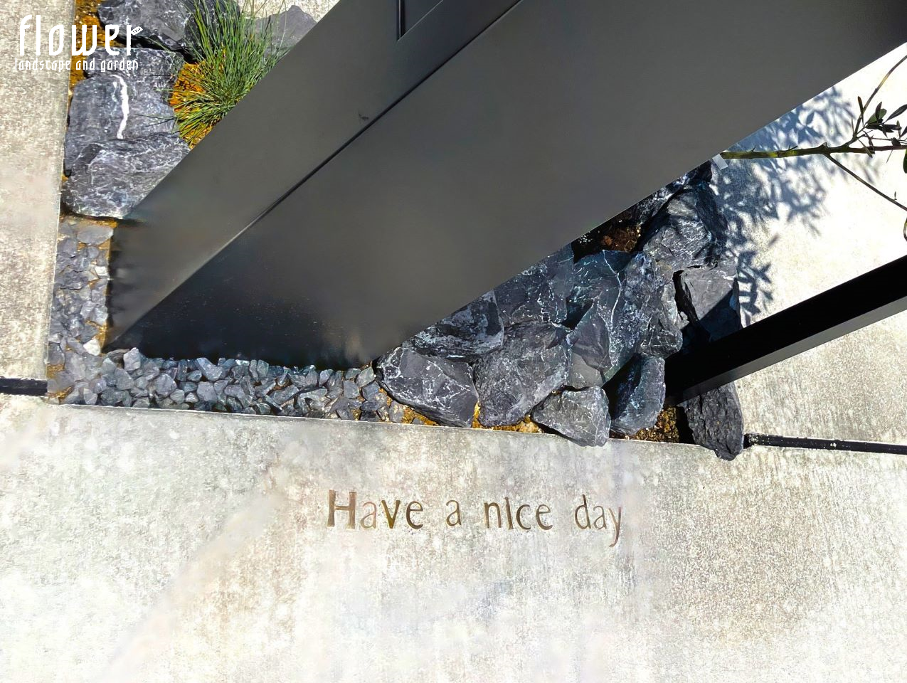 | コメント | 真鍮レターを施した入口は、 お気に入りのデザインで愉しくおしゃれな印象に。 真鍮文字は、お好みのメッセージを埋め込むことができます。 隣り合う、玄関とテラスには木調の目隠しフェンスを設置。 常緑樹のヤマボウシは、季節を問わず緑葉をつけ 開花時期には白くてかわいらしい花を咲かせます。 夜は植栽灯が植物を照らします。 【使用部材】 ・機能門柱:サンワカンパニー オスポール ・LED植栽灯:LIXIL 美彩 スパイクスポットライト ・手すり:YKKap ルシアス歩行補助手すり ・木調フェンス:土新建材 エコモックフェンス ・サイクルポート:YKKap ルシアス サイクルポート ・300角タイル:LIXIL グレイスランド IPF-300/GRL-12 |