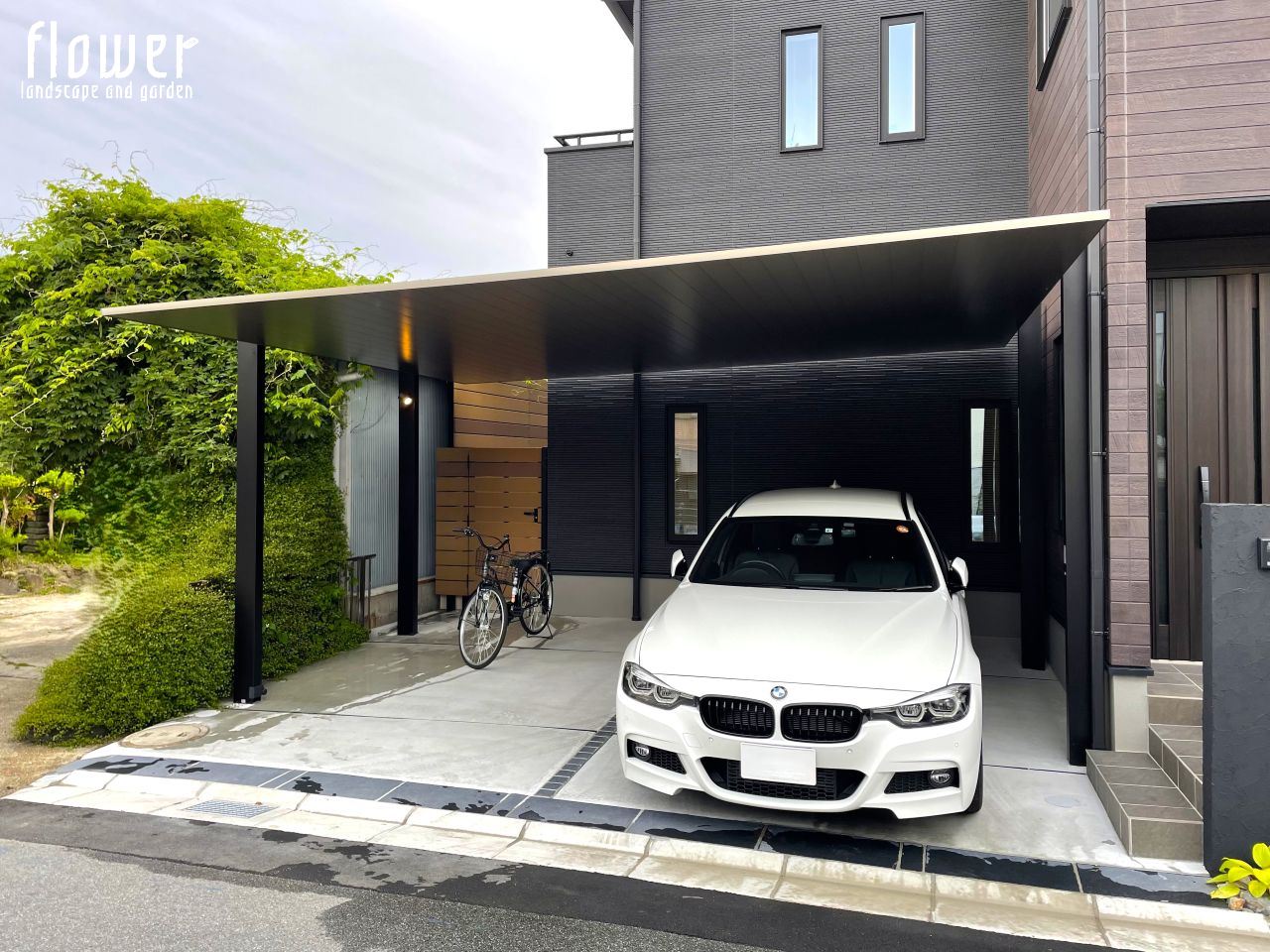 | コメント | 玄関前の目隠しを兼ねた門柱は、 中央にデザインガラスを配置。 昼夜問わず幻想的な表情を愉しめます。 車庫土間には平板で縁取りピンコロ石を並べました。 スタイリッシュで上質なフォルムのカーポートSCが 建物と美しく調和します。 お庭には木調フェンスを設置し、 リビングの延長のようなプライベート空間を演出。 色味の異なる木目をアクセントに組み合わせることで 圧迫感を抑えながらデザイン性を高めます。 【使用部材】 ・デザインガラス:オンリーワン G.プレート205 ・ポスト:YKK エクステリアポストG3 ・角柱:タカショー e-ARTWOOD PARTS ・勝手口門扉:LIXIL 開き門扉AB YR2型 ・勝手口門扉:土新建材 エコモック門扉 ・目隠しフェンス:フェンスAB TS2型 ・目隠しフェンス:土新建材 エコモックフェンス ・カーポート:LIXIL カーポートSC 2台用 ・300角タイル:LIXIL コンテⅡ ・縁平板:アイランド ライムストーン ・目地ピンコロ石:アイランド ライムストーン |