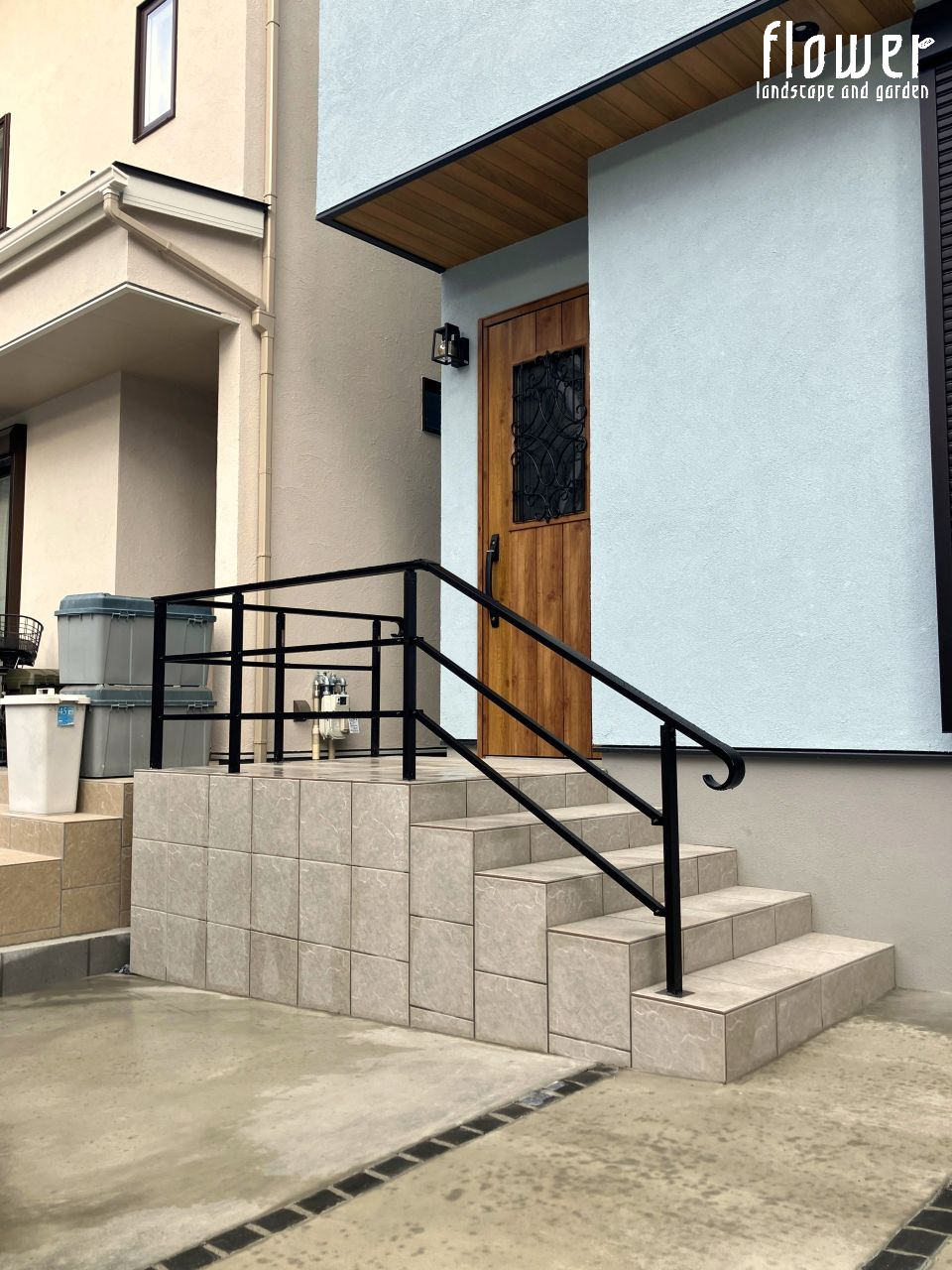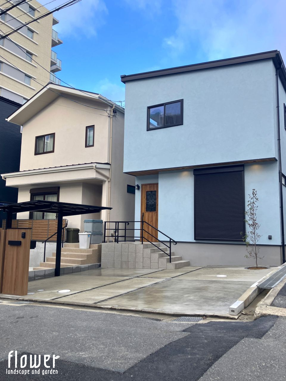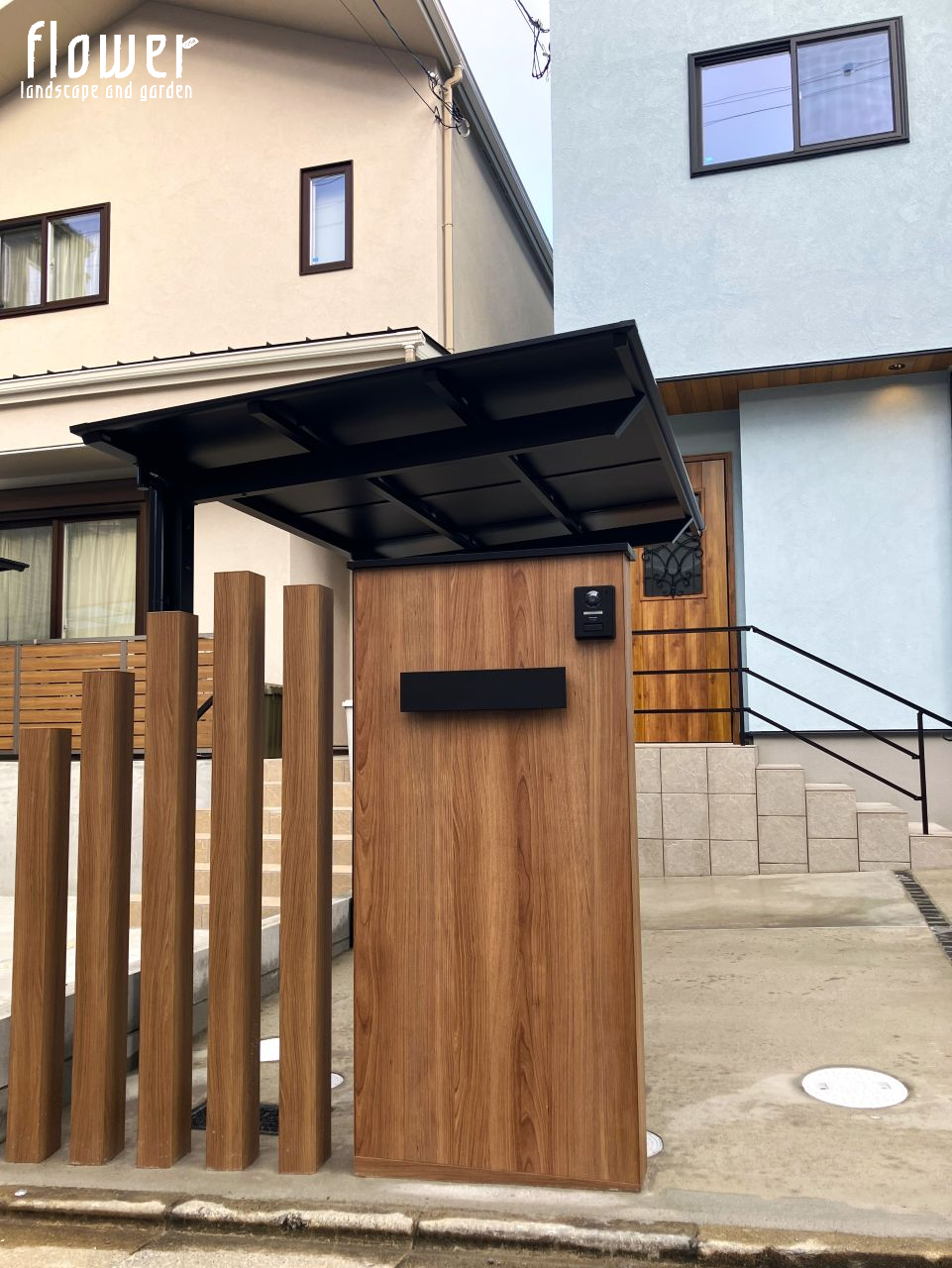| コメント | 木調とブラックのコントラストが映える機能門柱と リズム感のあるデザインのアルミ角柱を組合わせ、 門まわりの印象的なアクセントに。 植栽に取り入れた常緑ヤマボウシは、 四季を通して自然の緑を楽しむことができます。 ブラックのピンコロ石で見切ったアプローチの脇には、 ブラックマット屋根のサイクルポートを配置。 落ち着きのある高級感を与えます。 【使用部材】 ・機能門柱:LIXIL 機能門柱FK ・サイクルポート:LIXIL ネスカFミニ ・アルミ角柱:LIXIL デザイナーズパーツ枕木材 ・手すり:YKKap ルシアス歩行補助手すり ・300角タイル:LIXIL グレイスランド IPF-300 ・ピンコロ石:一丁掛 黒 |
